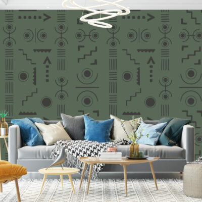 décoration murale motif ethnique moins chez wellpaper salon - Vert