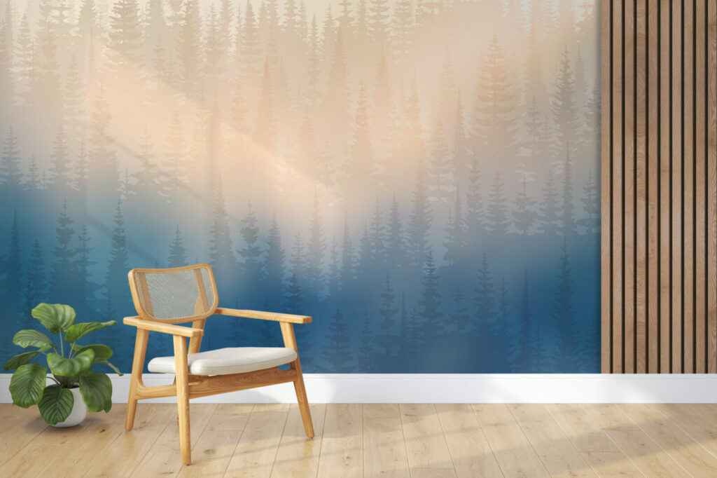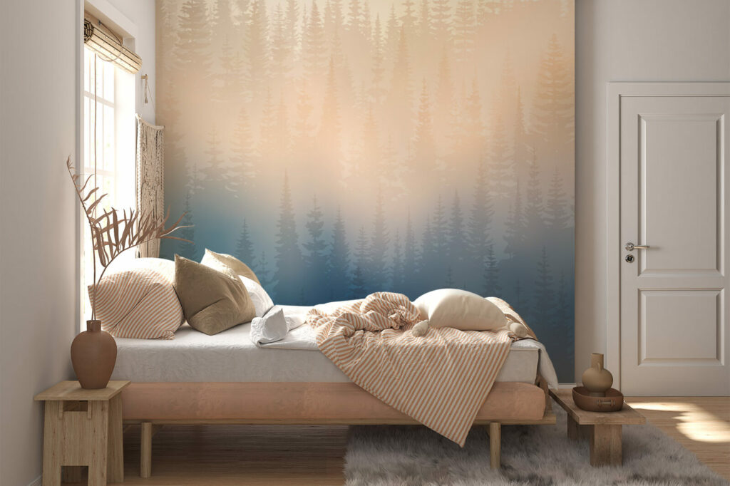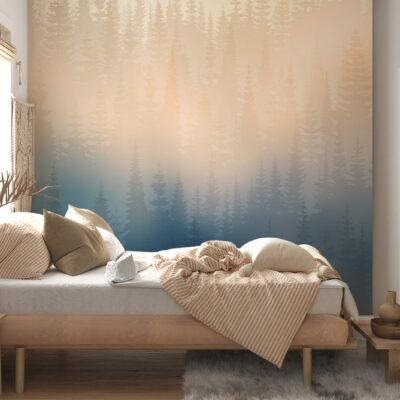 Diffusez dans votre pièce de la tranquillité et le charme des arbres couverts de brume avec ce papier peint forêt brumeuse composé de montagnes escarpées de sapins. Cette décoration murale est peinte à la main et présente des tons pastels du blancs rosé au bleus, des couleurs élégantes et profondes, parfaites pour introduire un thème naturel dans les salons, salles de bains, chambres ou autres pièces. Apportant la nature et les grands espaces à vos murs, ce papier peint forêt brumeuse ajoutera de la profondeur à un espace et pourra être complété par des meubles traditionnels ou scandinaves, selon vos préférences. L’utilisation de trois couleurs subtiles rend ce papier peint suffisamment minimaliste pour s’adapter à de nombreux espaces, où il créera une atmosphère relaxante. Créez le refuge idéal pour vous détendre avec ce papier peint forêt brumeuse. Ce papier peint a été conçu à l’aide de techniques dégradés innovants et en les combinant avec l’effet texturé du papier, ils ont créés un design plein de profondeur et de charme.