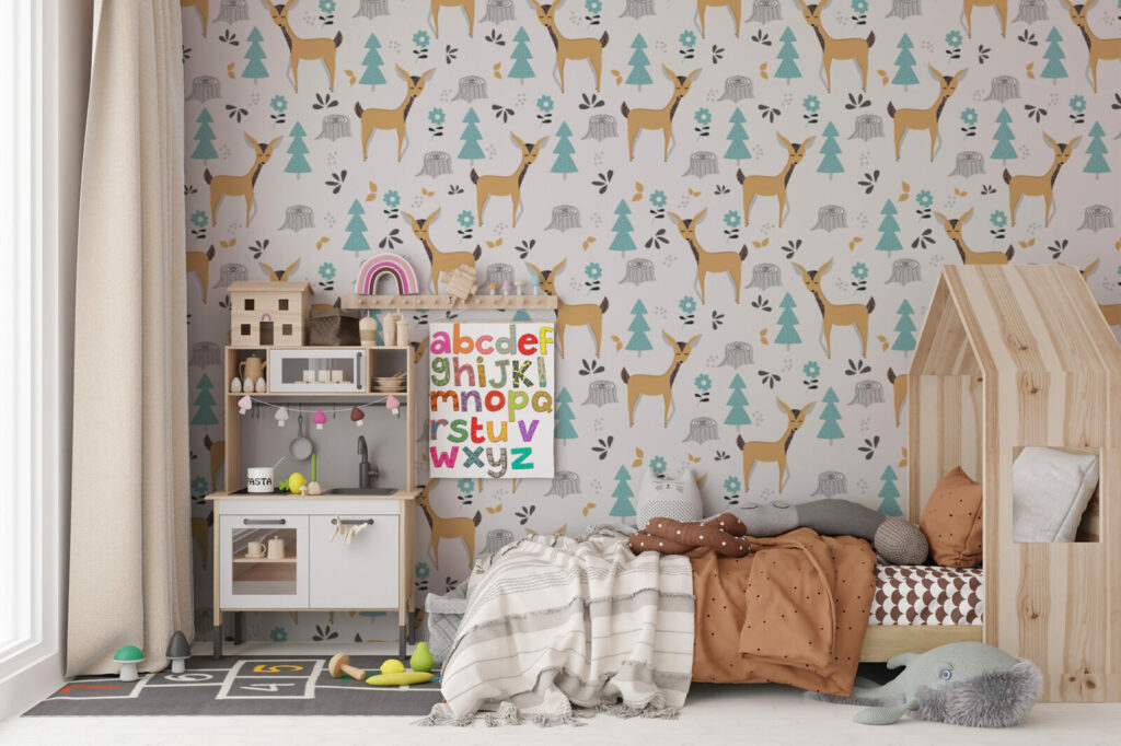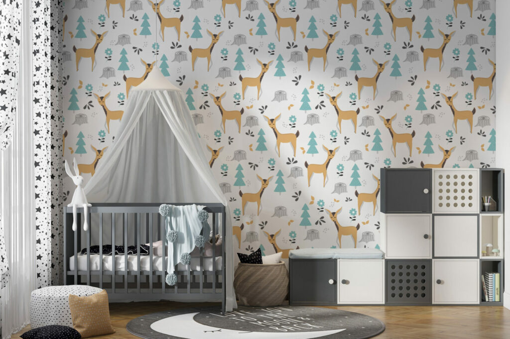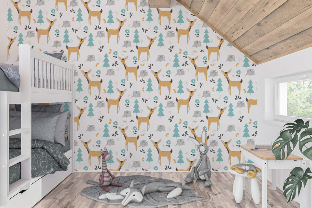 Offrez à votre enfant un cocon de douceur avec ce papier peint forêt enfant, peuplé de petites biches attendrissantes et de sapins stylisés. Ce décor tendre et poétique transforme la chambre en clairière enchantée, idéale pour favoriser le calme, l’imagination et l’éveil. Un choix parfait pour une chambre bébé, fille ou mixte, aux accents scandinaves et naturels.