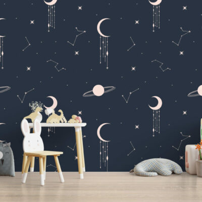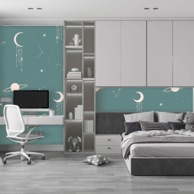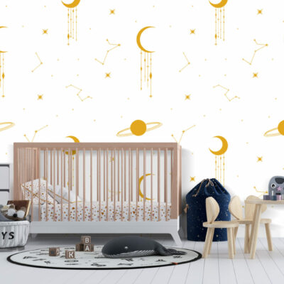 Voyagez à travers les cieux avec le Papier Peint Panoramique Galaxy, un dessin simple mais visuellement frappant à la fois. De façon minimaliste les demi-lunes et planètes sont la solution décorative parfaite si vous voulez créer un lieu mystique et rêveur. Pour un style mystérieux et différent, vous pouvez essayer ce papier peint dans la chambre des ados avec une déco sombre et des lumières colorées. Ou essayez-le dans une pièce avec des meubles en bois clair pour un look lumineux. Le rendu est un papier peint minimaliste que vous pourrez utiliser pour couvrir autant de mur que vous le souhaitez. Vous pouvez aussi l’utiliser pour créer un mur d’accent dans une merveilleuse chambre à coucher, un salon relaxant. Les motifs de planètes et de lunes ajouteront une touche apaisante dans toutes les pièces.
