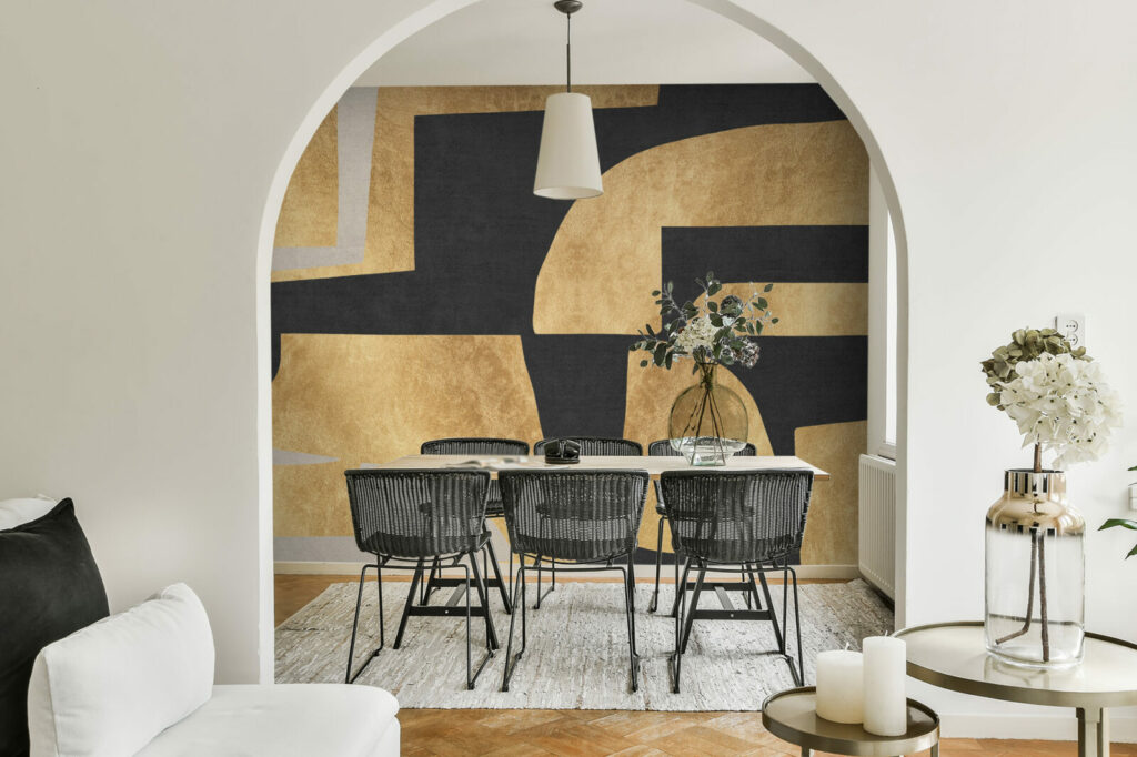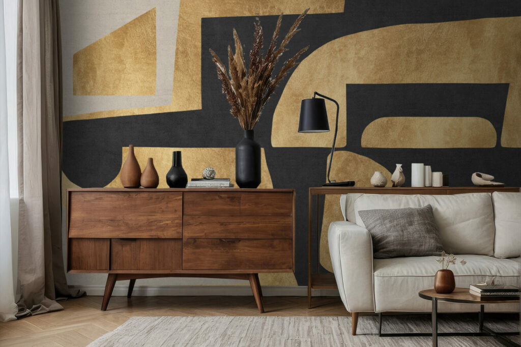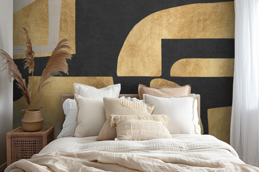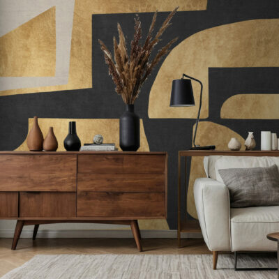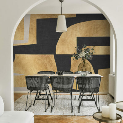 Ajoutez une touche d’audace à votre intérieur avec notre papier peint géométrique contemporain, mêlant des teintes riches et élégantes. Ce modèle joue sur un contraste captivant entre des formes noires, dorées et beiges, créant une ambiance à la fois artistique et chic. Le noir profond apporte une base de sophistication, tandis que le doré brillant ajoute une touche de luxe et d’éclat. Le beige adoucit l’ensemble, créant une harmonie visuelle parfaite entre modernité et élégance.