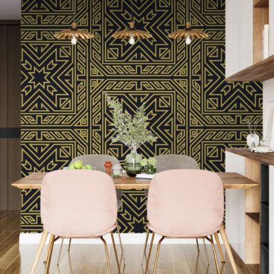 Le papier peint Golden Square est idéal pour les espaces de vie, tels que les salons, les chambres ou encore les bureaux, ce papier peint rehausse l’ambiance de la pièce grâce à son allure luxueuse. Les détails complexes des motifs dorés apportent une sensation de grandeur et d’élégance, tout en restant polyvalents et adaptés à divers styles d’intérieur. Il s’accorde parfaitement à un style contemporain, classique ou même éclectique. Le Carré d’Or est parfait pour rehausser n’importe quel mur de votre espace de vie.