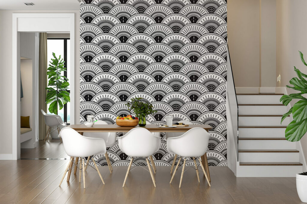 Facile à assortir avec des meubles contemporains ou classiques, ce papier peint noir et blanc permet de jouer avec les textures et les accessoires tout en gardant une toile de fond chic et raffinée. C’est un choix parfait pour ceux qui recherchent un élément de design unique qui apporte à la fois élégance et modernité.