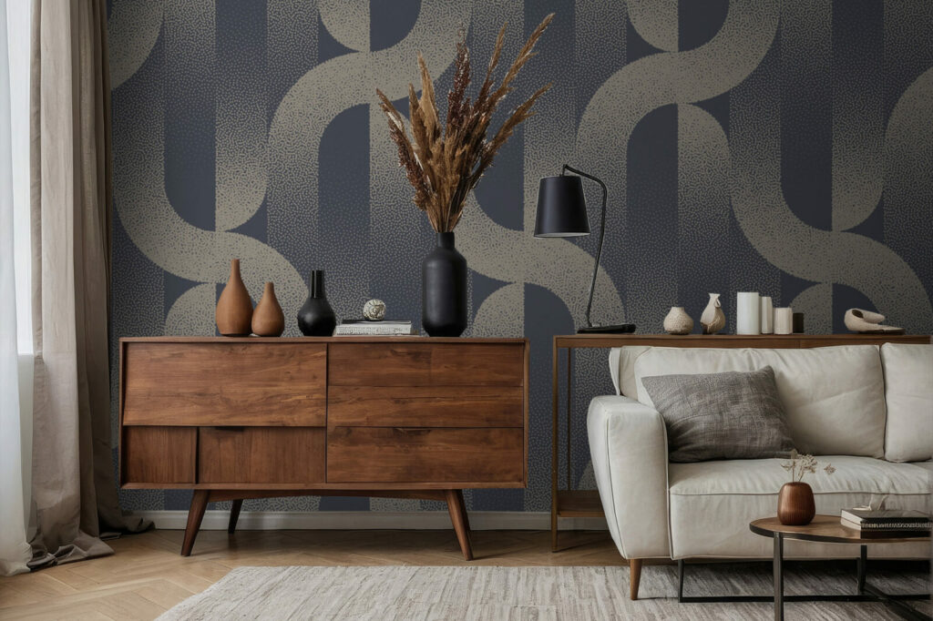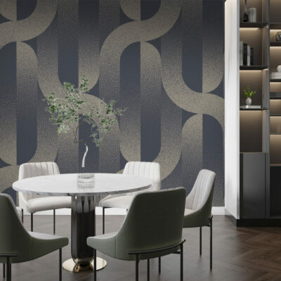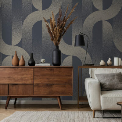 Ce papier peint convient parfaitement aux espaces tels que les salons, salles à manger, ou bureaux, où il peut servir de point focal ou de fond discret, selon la manière dont il est utilisé. Sa palette de couleurs intemporelles — un mélange de bleu foncé et de nuances de gris — le rend facile à associer avec une large gamme de styles décoratifs, allant des intérieurs minimalistes aux ambiances plus électrisantes.