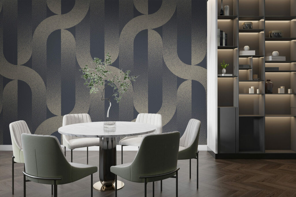 Idéal pour les intérieurs contemporains ou ceux qui cherchent à introduire une touche de modernité sophistiquée, ce papier peint se distingue par son motif répétitif aux courbes douces et harmonieuses. Chaque forme semble s’emboîter parfaitement avec la suivante, créant une continuité visuelle qui capte l’œil sans être envahissante. Le contraste entre les bandes verticales et les courbes fluides ajoute également un effet de mouvement et d’élégance à l’ensemble.