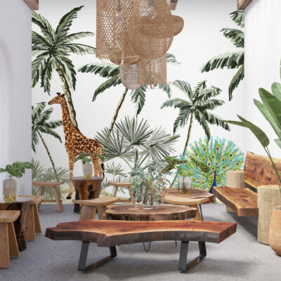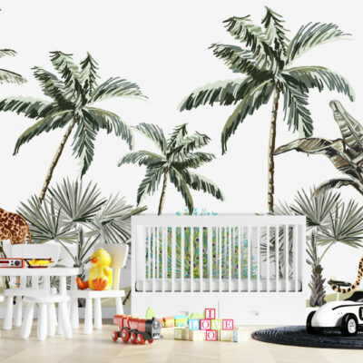 Introduisez dans la chambre de votre enfant une fascinante œuvre d’art avec notre Papier Peint Jungle. Ce papier peint montre un thème de jungle sur un fond blanc grisé se détache une girafe, un paon, une panthère, des palmiers. Poser ce papier peint minimaliste dans une chambre à coucher ou un salon avec un mobilier contemporain pour achever un style élégant et sophistiqué. Le fond clair est élégant et exclusif, faisant de ce papier peint panoramique un must-have pour n’importe quelle pièce de la maison.