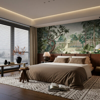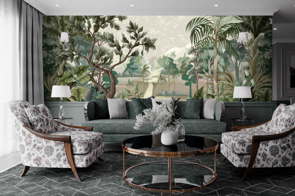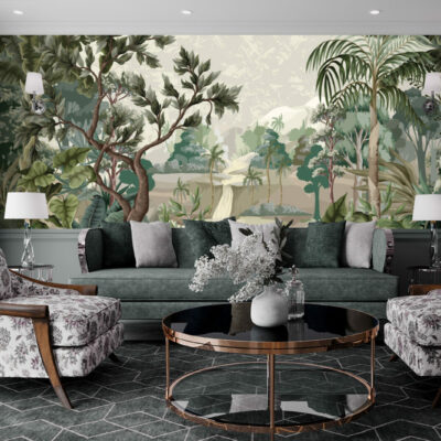 Le papier peint jungle panoramique peut changer l’ambiance établie d’un espace intérieur instantanément. Cette belle illustration classique d’une jungle pittoresque et sauvage sera parfaite pour le salon de votre maison. Illustration intéressante avec des vibrations rétro parfait pour un look classique et un grand panorama avec une nature à motifs verdoyant. Un art chic et vintage avec des tons élégants et un design charmant. Laissez le papier peint jungle panoramique créer un sentiment doux et une relaxation facile dans votre. Une illustration fascinante avec une merveilleuse émotion avec un croquis parfait pour ravir votre famille et vos amis.