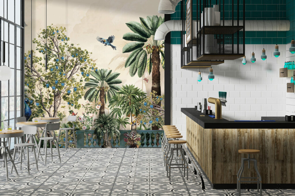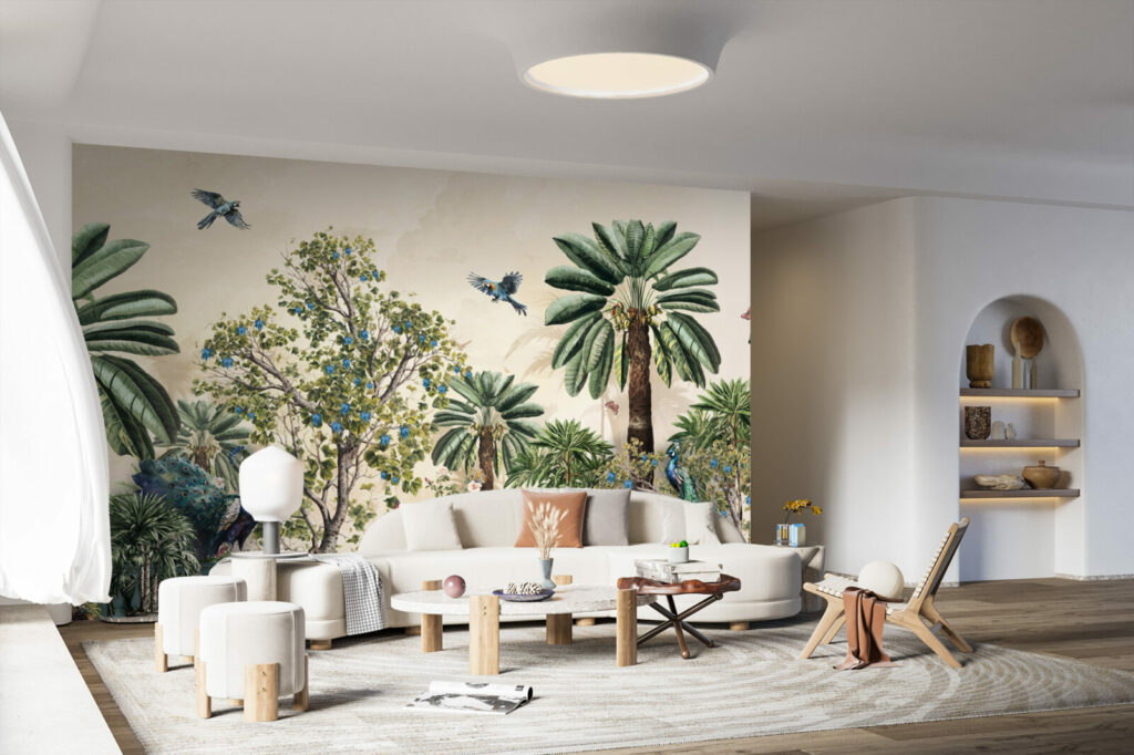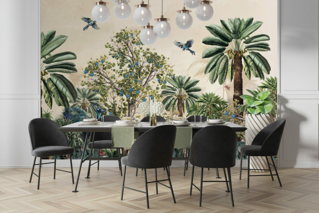 Le Papier peint jungle paon peut changer l’ambiance établie d’un espace intérieur instantanément. Cette belle illustration classique d’une jungle pittoresque et sauvage sera parfaite pour le salon de votre maison. Illustration intéressante avec des vibrations rétro parfait pour un look classique et un grand panorama avec une nature à motifs verdoyant. Un art chic et vintage avec des tons élégants et un design charmant. Laissez le Papier peint jungle paon créer un sentiment doux et une relaxation facile dans votre. Une illustration fascinante avec une merveilleuse émotion avec un croquis parfait pour ravir votre famille et vos amis.