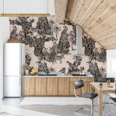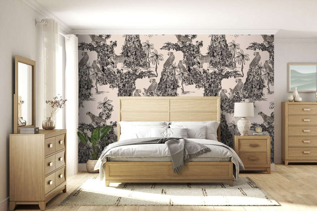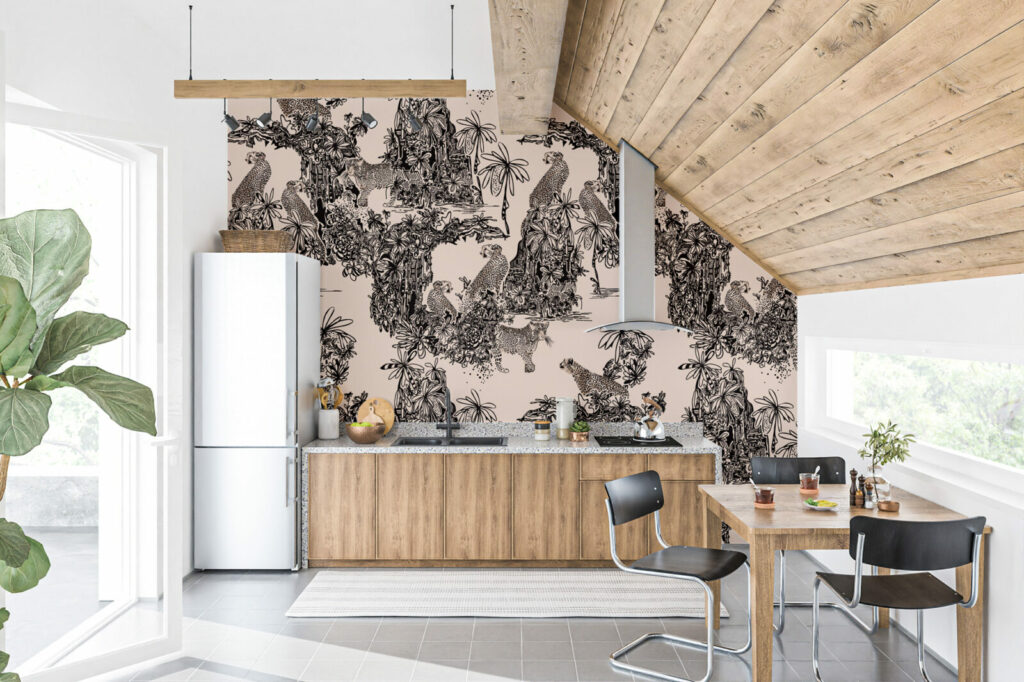 Le papier peint Leopard Family est parfait pour ceux qui recherchent à apporter une touche de sophistication et d’audace à leur intérieur. Son motif, imprimé dans des tons de noir et beige, se distingue par une palette neutre qui s’intègre facilement dans divers styles de décoration, qu’il s’agisse d’un salon contemporain, d’une chambre à coucher élégante ou même d’un bureau stylé. Ce papier peint ajoute une profondeur et une texture visuelle remarquables, créant ainsi un point focal fascinant dans n’importe quelle pièce.