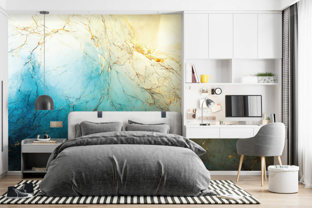 Vous cherchez un moyen de faire ressortir votre espace ? Ne cherchez pas plus loin que Kimela. Ce papier peint marbrures bleu claire or unique et exclusif est parfait pour votre chambre à coucher, votre salle à manger ou votre salon. Avec sa teinte bleue, il ajoutera une touche de personnalité à n’importe quelle pièce. De plus, les tons métalliques ajouteront une touche de luxe à votre espace. Alors n’attendez plus, ajoutez le papier peint marbrures bleu claire or Kimela à votre espace dès aujourd’hui !