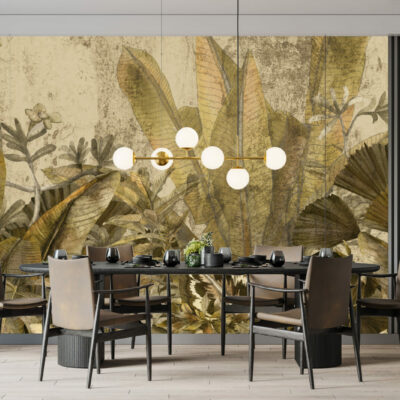 Notre papier peint panoramique Mille et une feuilles est la solution décorative parfaite pour transformer votre pièce en un paradis botanique. Avec sa palette de tons verts à l’aquarelle qui explore les nuances claires et profondes, ce modèle évoque des images d’une île tropicale où un ensemble de feuilles de palmier, feuilles de monstera et de bananier. Les tonalités naturelles de vert sont faciles à assortir avec n’importe quel décor d’inspiration bohème, peut-être avec des meubles en bois, des plantes d’intérieur et un mélange de couleurs chaudes et froides pour une atmosphère rafraîchissante.