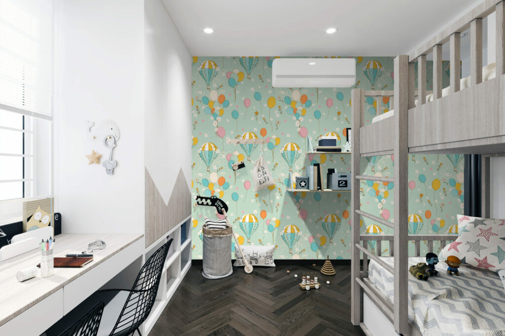 Idéal pour une chambre d’enfant ou une salle de jeux, ce papier peint aux motifs enfantins inspire l’imagination et invite à l’aventure. Les couleurs vives des montgolfières et des ballons contrastent harmonieusement avec le fond pastel, créant un environnement à la fois stimulant et relaxant. Ce décor aérien et poétique favorise un sentiment de légèreté, parfait pour une atmosphère propice au rêve et à la créativité.
