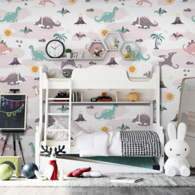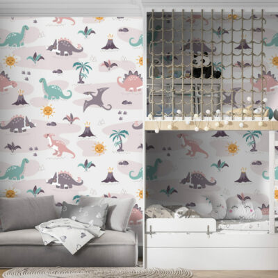 Faites voyager vos enfants dans le monde de l’imaginaire avec ce papier peint Dino World !