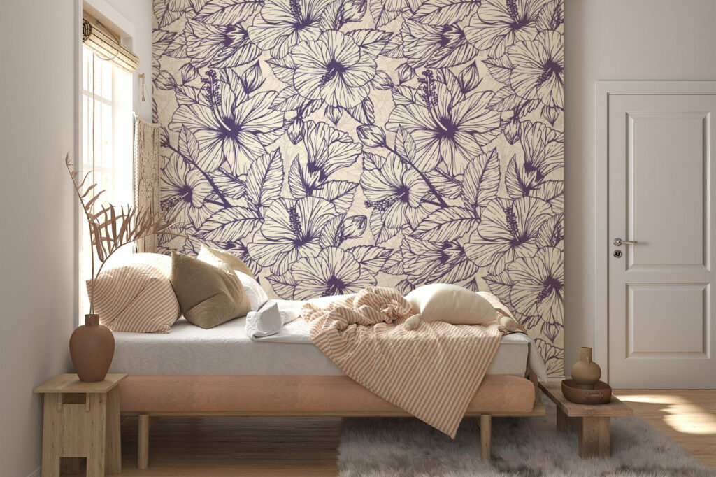 Le papier peint motif floral ne se démode jamais, il est à la fois fort, fleuri et sophistiqué. Les motifs floraux sont idéaux dans la chambre ou le salon, apportant une touche romantique chic et cosy. Nous recommandons de poser du papier peint motif floral sur un ou deux pans de mur pour créer un mur d’accent tendance.