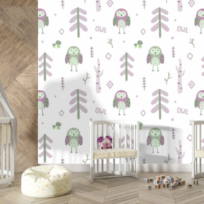 tapisserie repositionnable enfantine motif chouette bon marché livraison gratuite chambre nouveau né