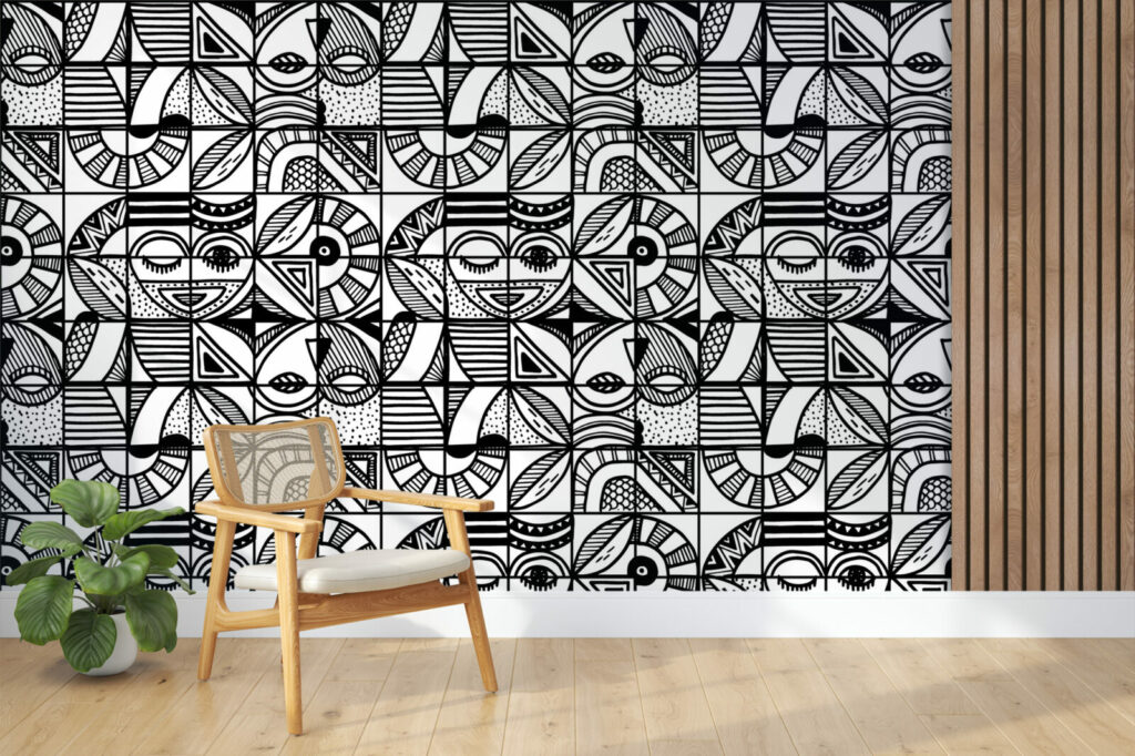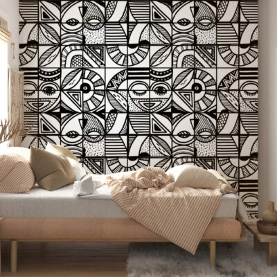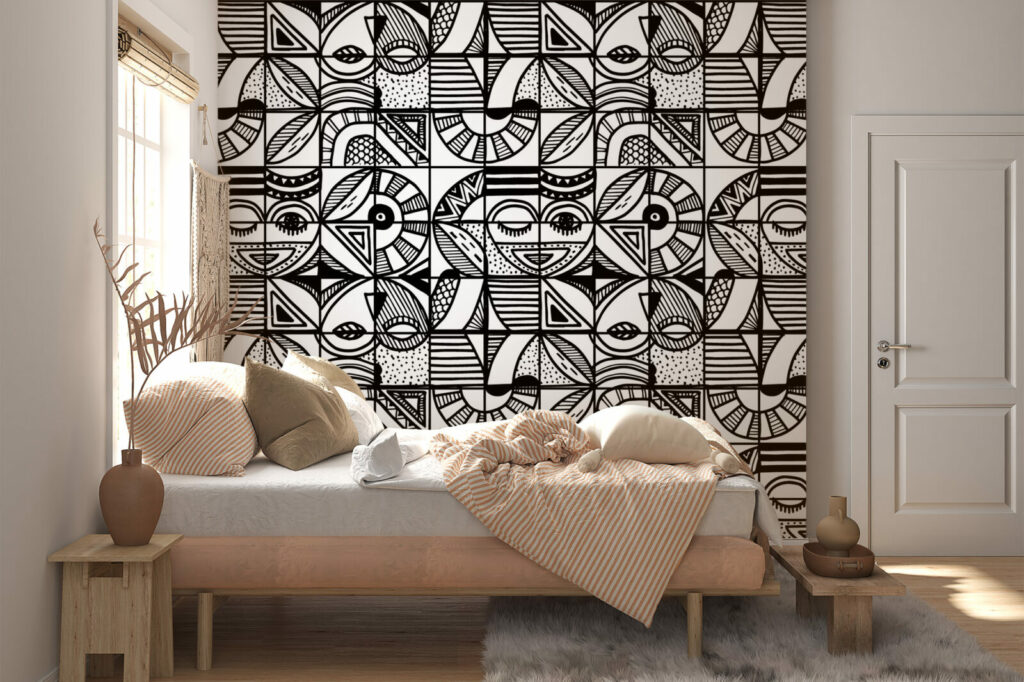 papier peint panoramique motifs japandi scandiboho végétal noir & blanc enfants géométrique vintage paysage wallpaper décoration murale décoration intérieur mobil-home