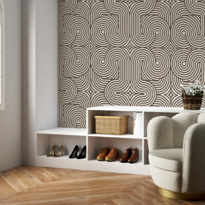Découvrez notre papier peint Nahastuta aux motifs géométriques uniques, conçu pour apporter une touche d’élégance et de modernité à vos espaces intérieurs. Le design présente des lignes concentriques fluides qui s’entrecroisent, formant un motif hypnotique et régulier. Ce style rétro revisité, inspiré des années 70, s’intègre parfaitement dans un intérieur contemporain ou vintage, tout en ajoutant une touche d’originalité et de sophistication.