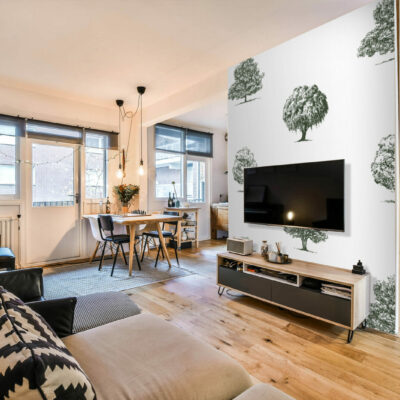 Que vous cherchiez à relooker votre salon, une chambre ou même un espace de travail, ce papier peint s’intègre parfaitement à différents styles de décoration, qu’ils soient modernes, minimalistes ou classiques. Le choix des couleurs subtiles et naturelles assure une harmonie avec une large palette de couleurs d’intérieur. Le fond clair associé aux arbres aux contours délicats crée une sensation d’espace et de lumière, idéal pour agrandir visuellement les pièces.