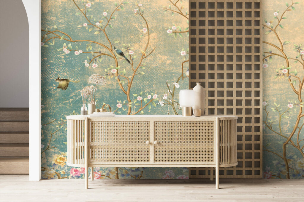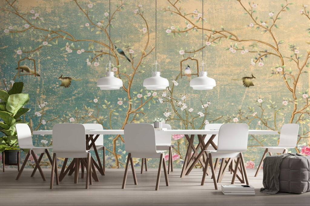 Papier peint oiseaux Chinoiserie fleurie est idéal pour ravir votre famille et vos amis. Cette façade belle et merveilleuse est une garantie de style idéal pour accrocher dans votre maison et habiller vos murs d’art moderne. Laissez Papier peint oiseaux Chinoiserie fleurie créer une ambiance différente et une énergie positive dans votre espace de loisirs, votre pièce résidentielle ou votre entreprise. Plusieurs éléments éclatants comme un oiseau coloré , des fleurs épanouies, des branches étendues. Le Papier peint oiseaux Chinoiserie fleurie l’apparence d’une superficie instantanément. Illustration éblouissante d’une scène artistique et attrayante.