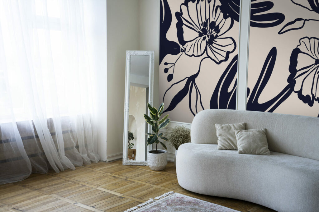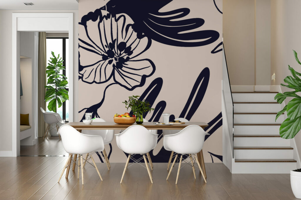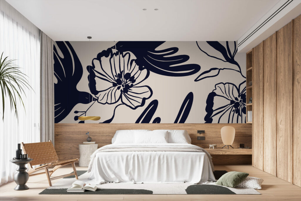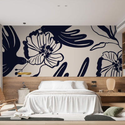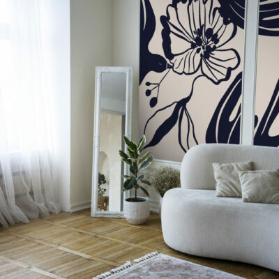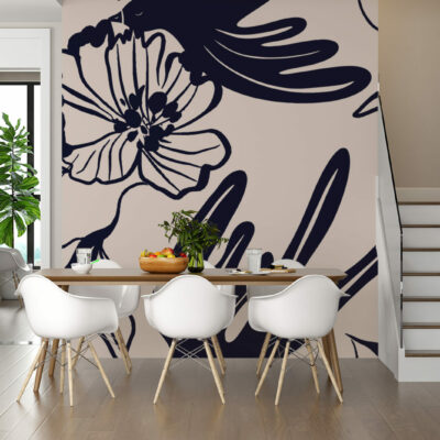 Les oiseaux abstraits apportent une sensation de légèreté et de mouvement, tandis que les fleurs noires stylisées ajoutent une profondeur graphique élégante. Le fond beige doux permet de sublimer les motifs noirs, tout en apportant une ambiance chaleureuse et sereine à votre espace. Ce papier peint panoramique est parfait pour créer un mur d’accent dans un salon, une chambre, ou même un bureau, offrant un point focal visuel saisissant.