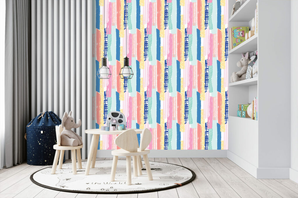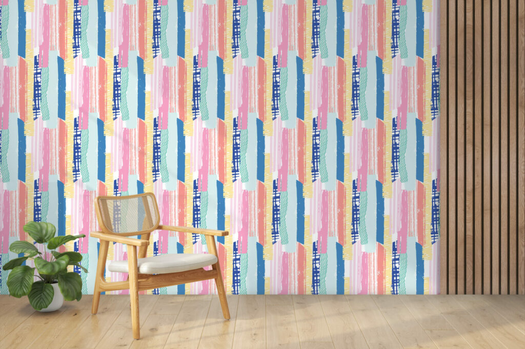 Combinant des rayures, des points et des blocs de couleurs, le papier peint panoramique abstrait aux rayures plein de texture et de chaleur. C’est un style classique qui apportera une touche vintage avec une touche moderne. Disponible dans des tons pastel et des teintes plus vives, il y en a pour tous les goûts.
