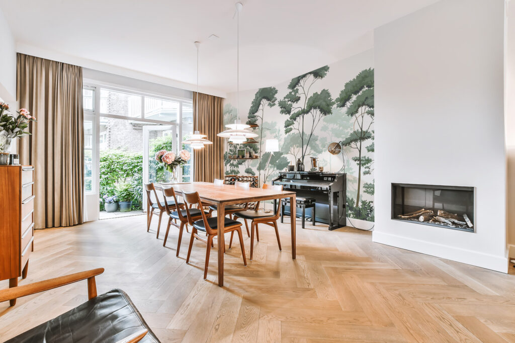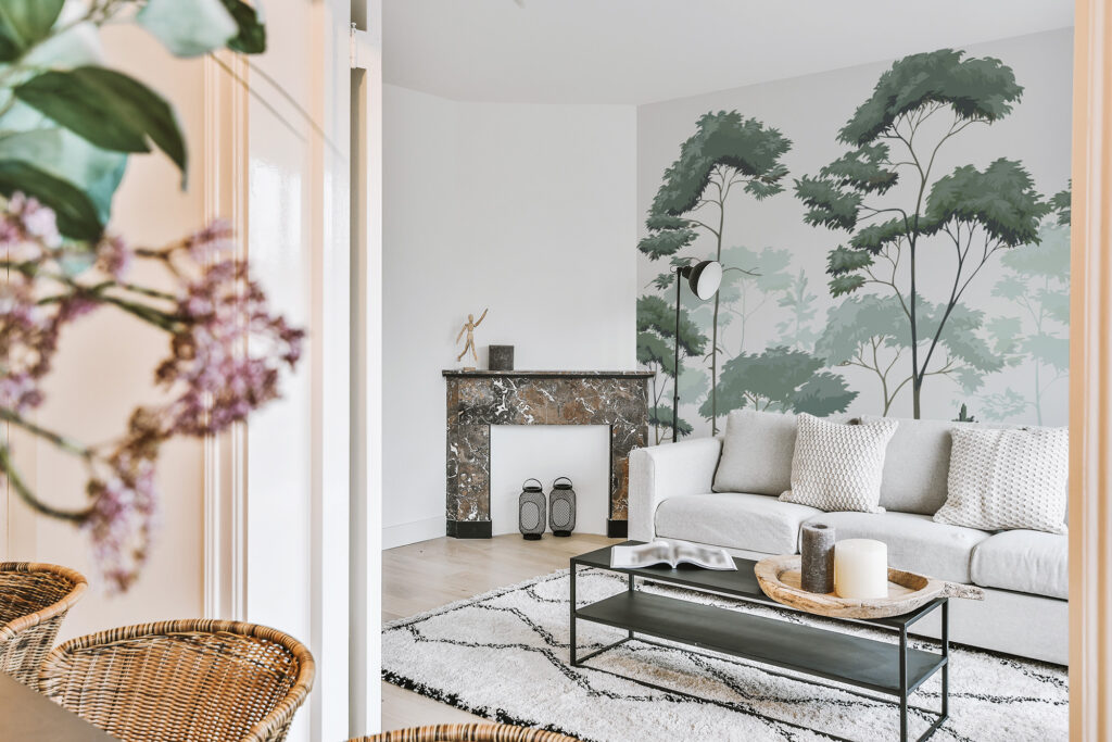 Ensuite, ce papier peint panoramique arbre s’intègre facilement dans différents univers décoratifs. Dans un intérieur contemporain, il apporte une touche organique qui adoucit les lignes modernes. Dans une décoration scandinave ou naturelle, il prolonge l’esprit épuré en s’associant parfaitement au bois clair, aux textiles naturels et aux teintes neutres. De plus, il convient aussi bien à un salon qu’à une salle à manger, une chambre ou un espace de travail en quête de sérénité.