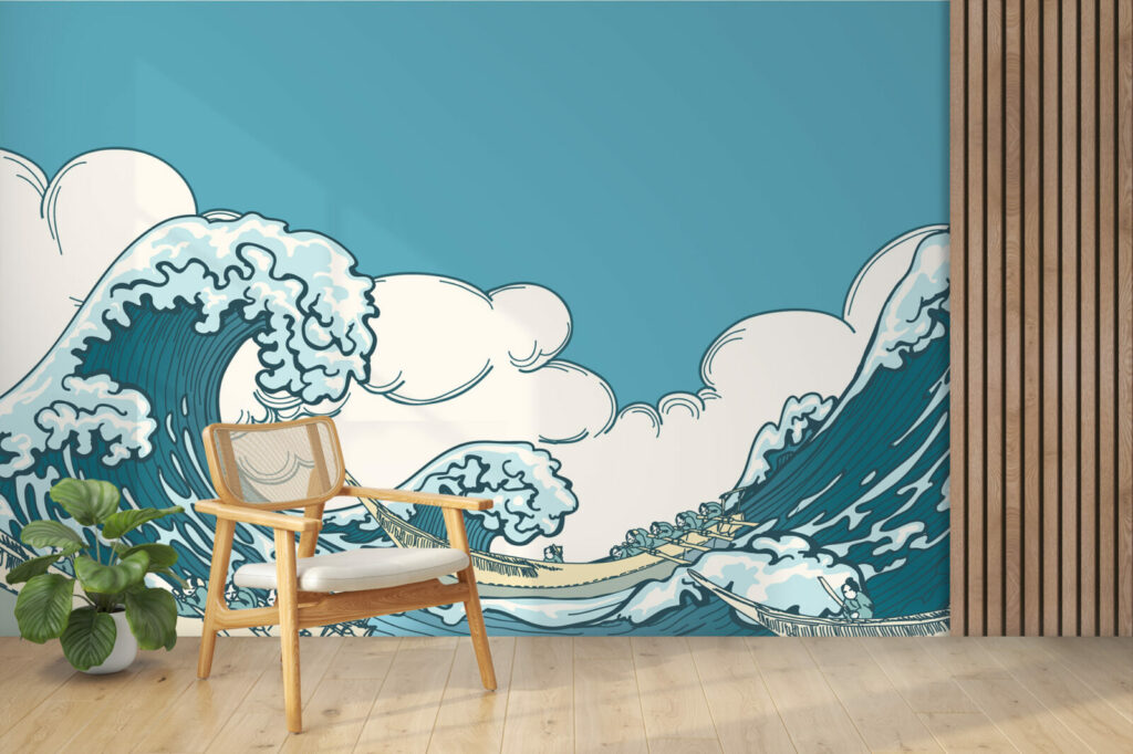 Ce papier peint panoramique reproduit la célèbre vague de Kanagawa, issu de la plus belle collection du peintre Japonais Hokusai. Ce Papier peint panoramique Big Wave Hokusai affirmera votre passion pour la peinture et les musées, ou encore les tableaux de maître. Cette fresque murale vous plongera dans l’univers merveilleux de l’estampe japonaise. Le chef d’œuvre d’Hokusai déferle sur vos murs avec ce papier peint. Redécouvrez les classiques de la peinture à travers cette collection qui rend hommage aux plus grands artistes. Un tableau de maître et pour parer votre intérieur d’un classicisme indémodable. Sous la vague au large de Kanagawa, plus connue sous le nom de « la vague d’Hokusai », est sans aucun doute l’estampe japonaise la plus célèbre. Icônes du monde de l’art devenues motifs populaires avec ces flots à l’écume blanche et son bleu profond. Retrouvez chez vous la vivacité et la puissance de représentation du grand maître de l’estampe nippone Hokusai. Sous ses doigts, la vague s’élance et plonge sur les embarcations des pêcheurs imprudents. Pour un petit clin d’œil humoristique dans une salle de bain, ce papier peint à l’effigie de la « vague » se marie tout aussi bien dans tous vos espaces de vie. Combiné avec du mobilier en bois aux lignes épurées, il rehausse l’ambiance japonisante. Contrasté avec une déco néo-baroque, il insiste sur le classicisme de la pièce. Associé avec du métal pour un look industriel, il donne à votre intérieur une allure de loft New Yorkais.