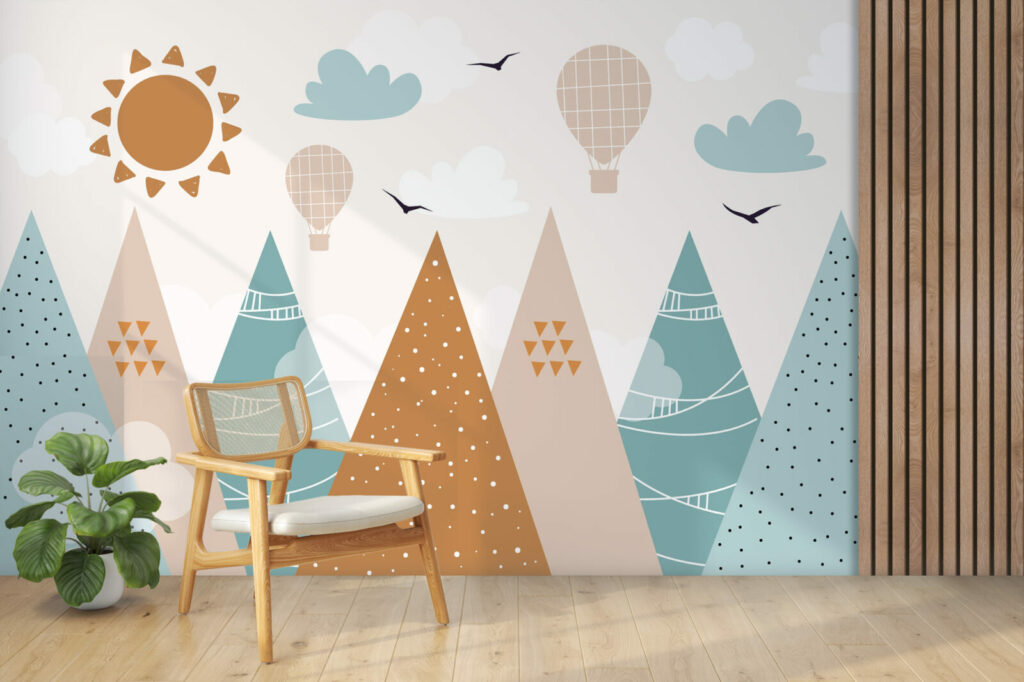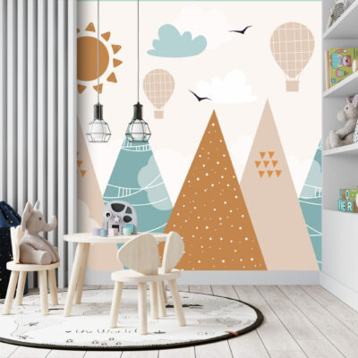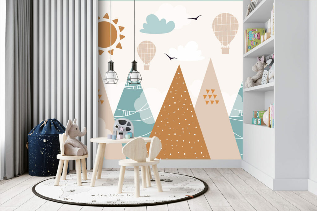 Apportez une toute nouvelle sensation dans la chambre de votre enfant avec notre Papier Peint Panoramique Montagnes Scandinaves pour Enfants exclusif. Ce Papier Peint Panoramique Montagnes mignon dépeint une scène de dessin animé de montagne avec des montgolfières et des oiseaux dans des tons pastels.