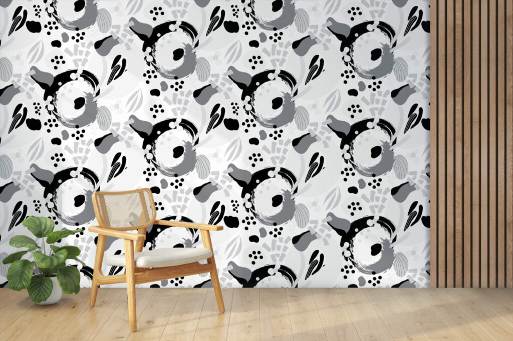 papier peint panoramique motifs japandi scandiboho végétal noir & blanc enfants géométrique vintage paysage wallpaper décoration murale décoration intérieur mobil-home