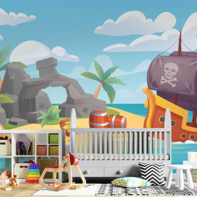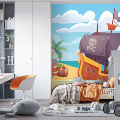 Apportez un sentiment d’aventure magique dans la chambre de votre enfant avec ce magnifique papier peint bateau pirate !