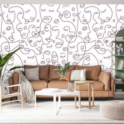 D’une seule ligne, les visages se connectent entre eux. Ce papier peint abstrait et artistique est un choix incontournable pour ajouter une touche de singularité et de convivialité à votre intérieur.