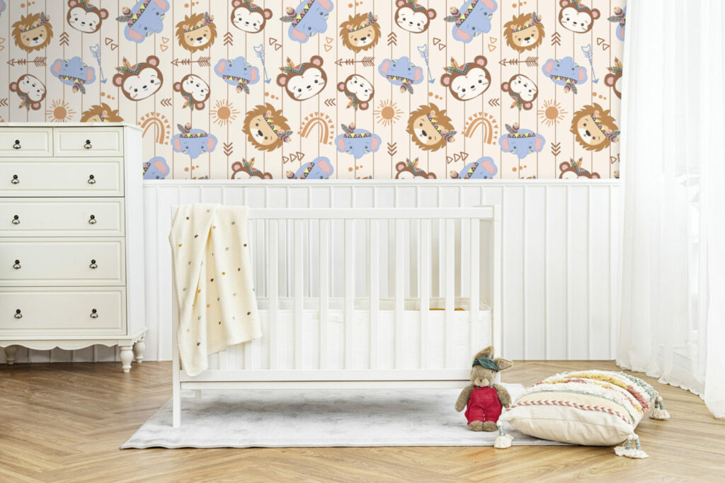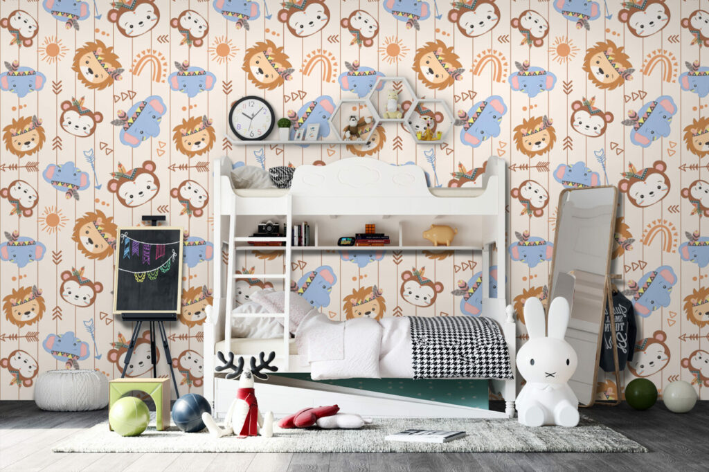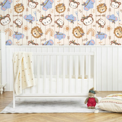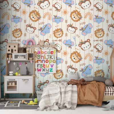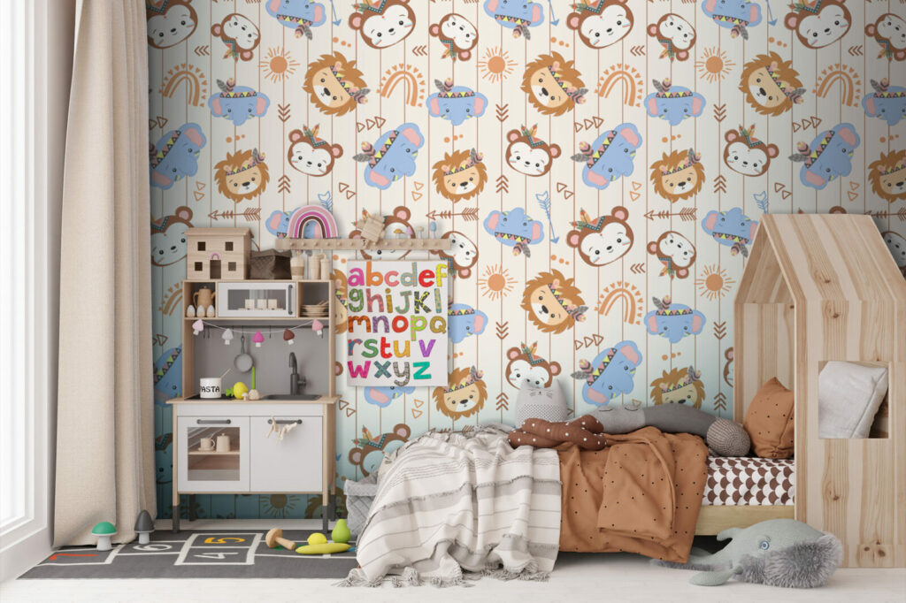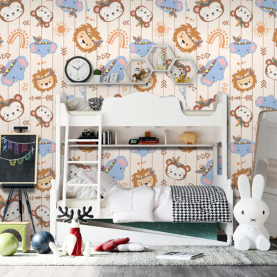Apportez une touche bohème à la chambre de votre enfant avec ce papier peint motif animaux qui allie tendance et fonctionnalité, tout en offrant un espace chaleureux et inspirant.
