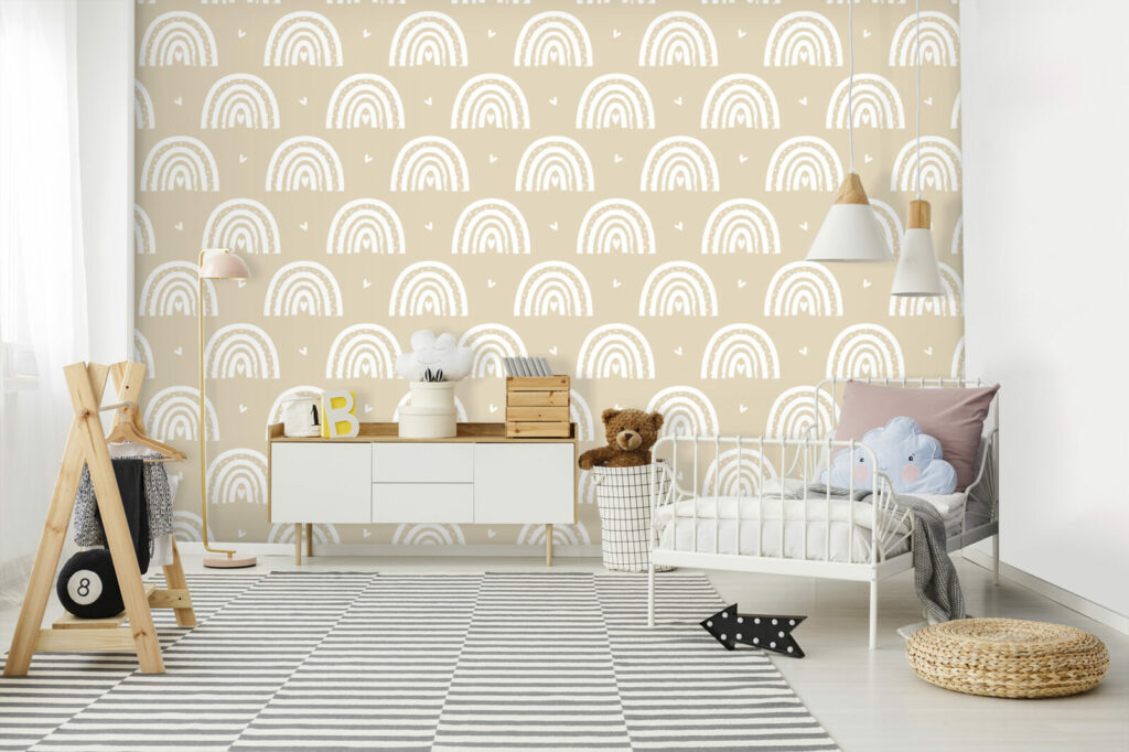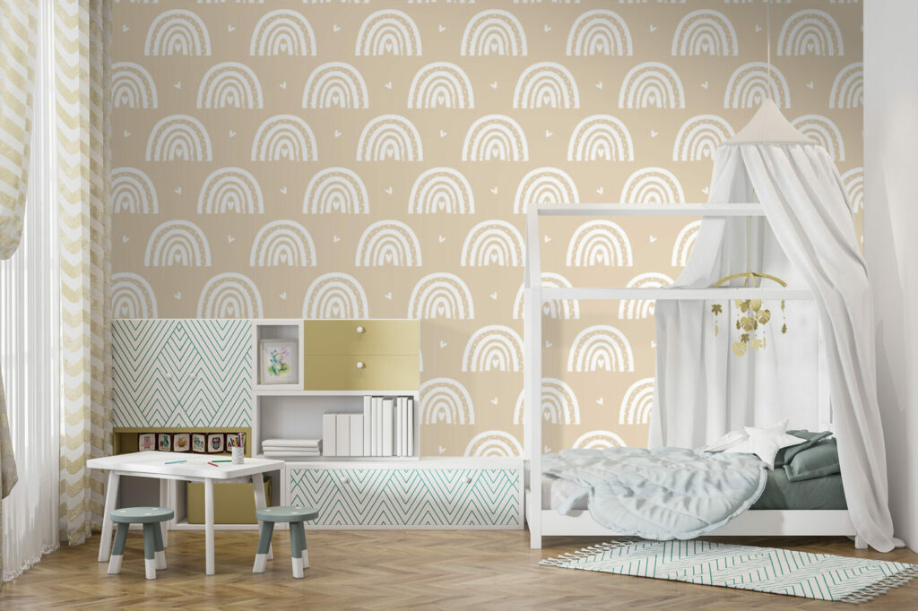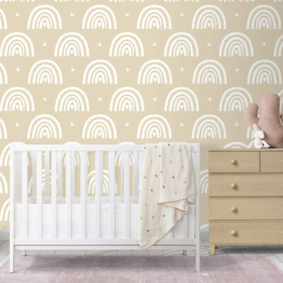 Découvrez notre adorable papier peint Rainbow Love, conçu pour apporter une touche de douceur et de chaleur à vos espaces de vie. Ce motif charmant, composé d’arcs-en-ciel délicatement dessinés et accompagnés de petits cœurs, est parfait pour les chambres d’enfants, les nurseries ou toute pièce où l’on souhaite instaurer une ambiance joyeuse et réconfortante. Les teintes beiges et blanches apaisantes créent une atmosphère à la fois contemporaine et chaleureuse, s’intégrant facilement à divers styles de décoration intérieure.