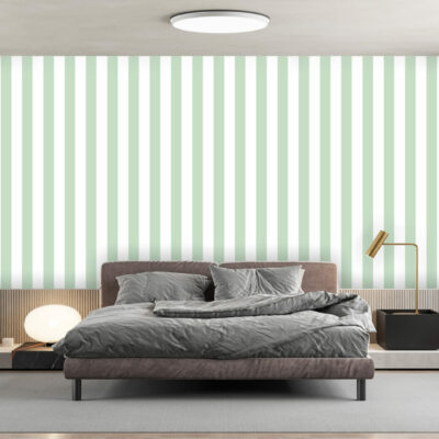 papier peint personnalisable rayures retro chambre adulte - vert blanc