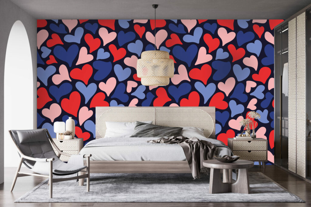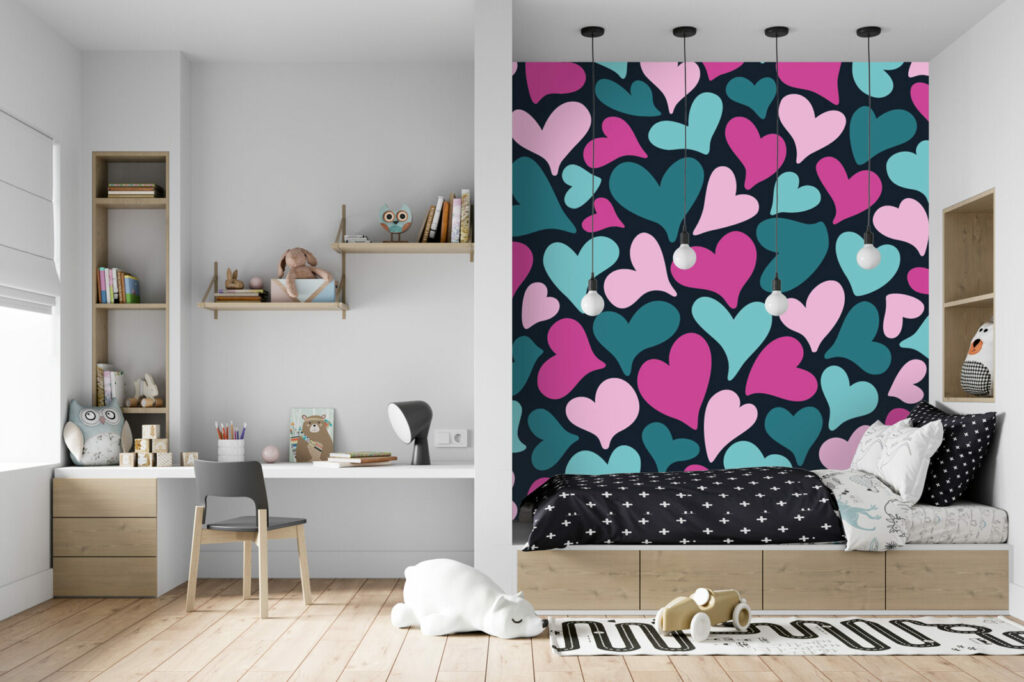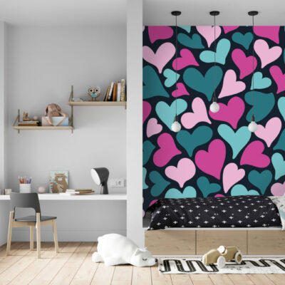 Notre Papier peint petits cœurs « Salang » allie romance et charme psychédélique de façon légèrement plus versatile que sa contrepartie multicolore. Les cœurs utilisent différents couleurs et reposent sur un arrière-plan foncé pour un look contemporain. Plutôt chargé et extravagant, c’est un design qui fonctionne particulièrement bien comme mur d’accent dans un espace lumineux ou pour pousser le côté psychédélique d’une pièce au look rétro moderne. Dynamiser votre salon avec le Papier peint petits cœurs Salang, votre chambre ou ajouter une touche pop à votre bureau.