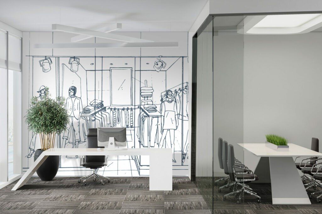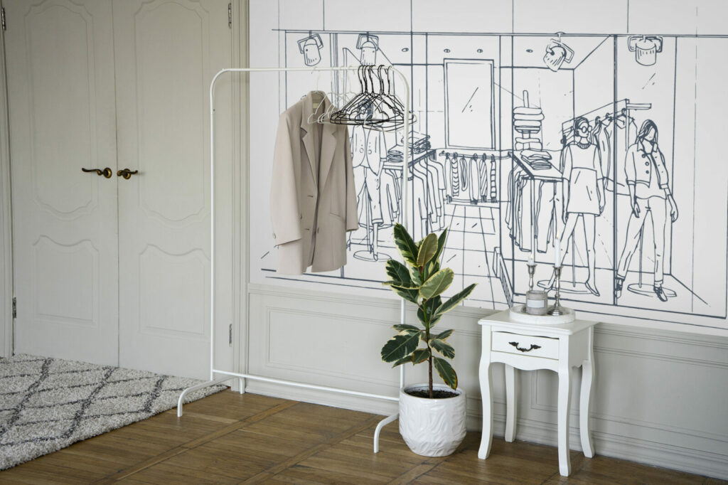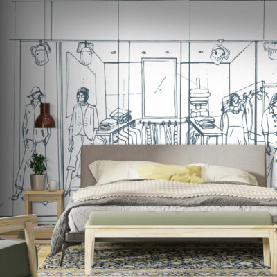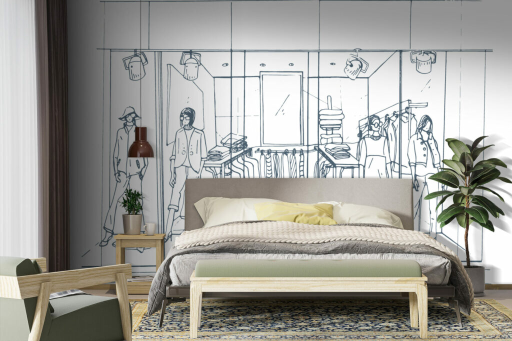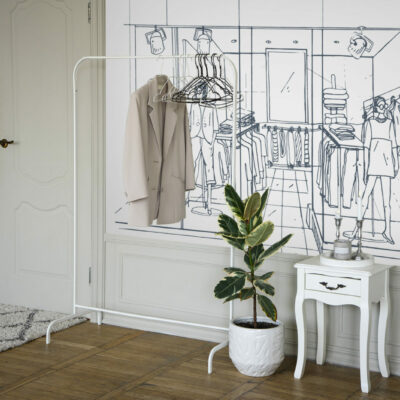 Le papier peint Shopping est un choix idéal pour ceux qui cherchent à introduire un style urbain et moderne dans leur intérieur. Ce motif raffiné représente une scène de boutique de vêtements avec des mannequins élégamment habillés, installés dans une vitrine minimaliste. Les lignes fines et délicates du dessin apportent une touche sophistiquée tout en capturant l’essence du monde de la mode.