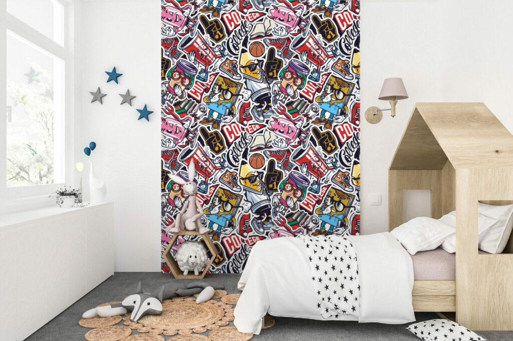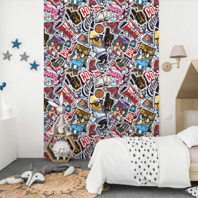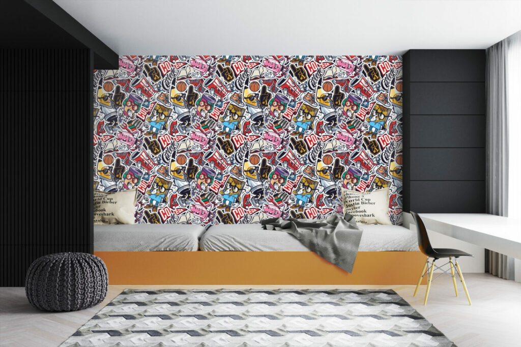 Le papier peint Stickers est un véritable concentré d’énergie et de dynamisme, parfait pour apporter un esprit jeune et branché à votre intérieur. Ce modèle aux multiples illustrations colorées et vibrantes s’inspire du style graffiti et des stickers urbains, offrant un look résolument moderne et audacieux. Avec des motifs amusants tels que des baskets, des gobelets, des mains et des personnages stylisés, ce papier peint capture parfaitement l’essence de la culture pop et de l’univers étudiant.