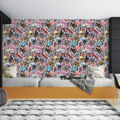 Idéal pour une chambre d’adolescent, un espace créatif, ou encore une salle de jeux, ce papier peint apporte une touche ludique et expressive à vos murs. Sa palette de couleurs vives, composée de rouge, bleu, jaune et vert, assure une ambiance dynamique et engageante. Le design répétitif et rempli de détails en fait un excellent choix pour ceux qui souhaitent créer une atmosphère vivante et originale dans leur intérieur.