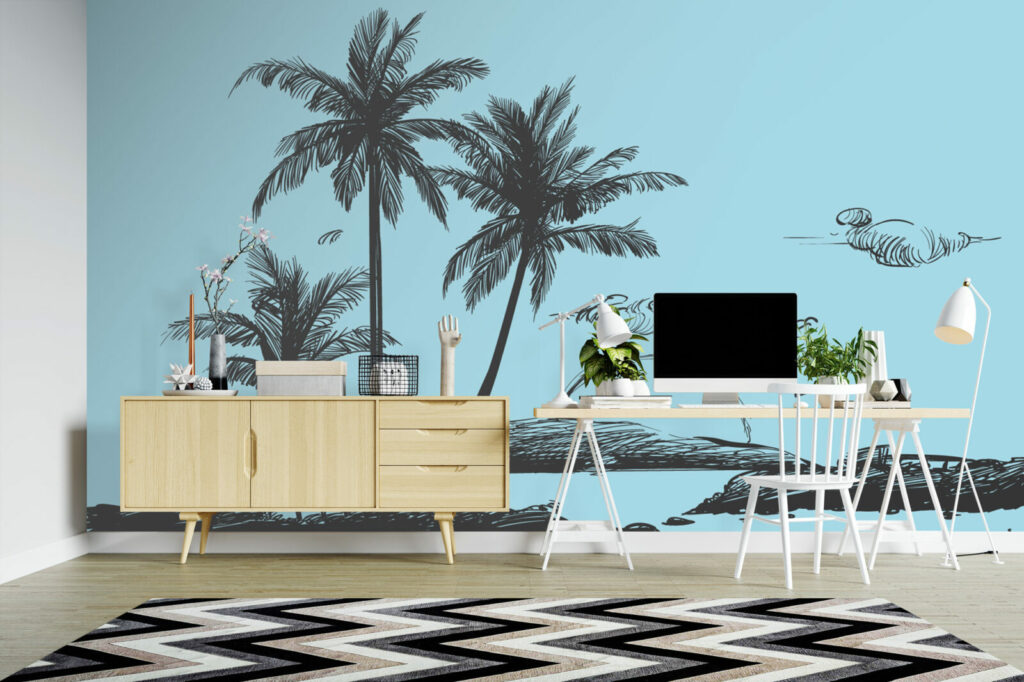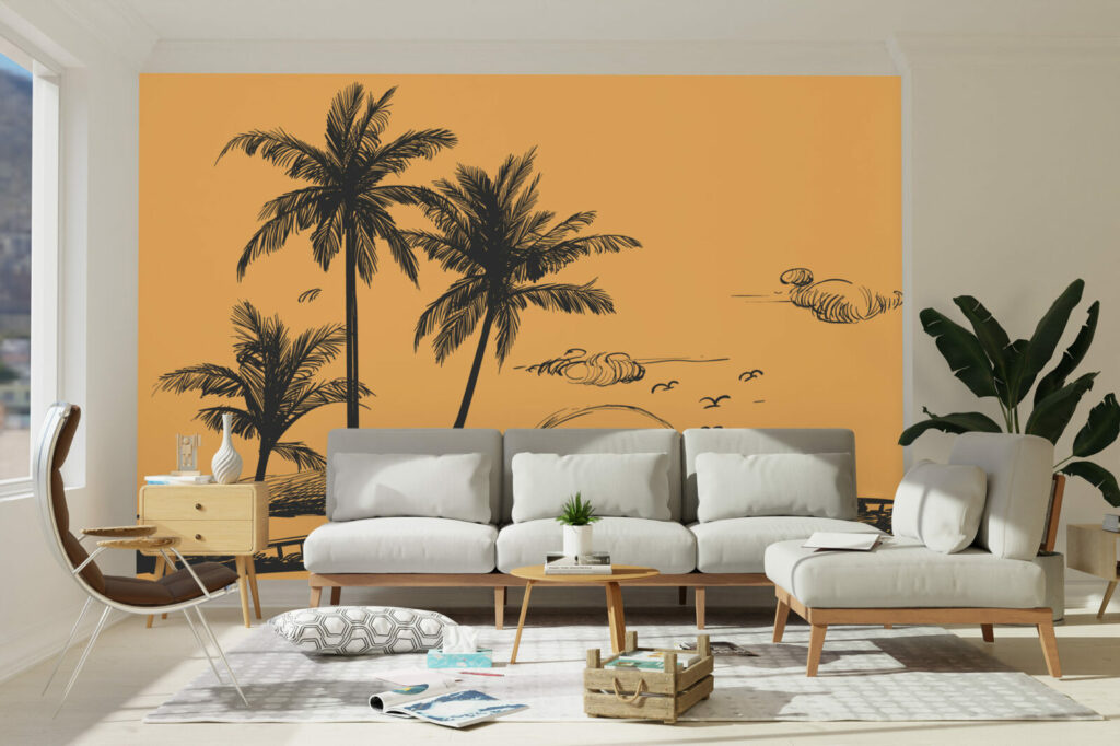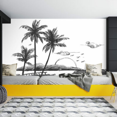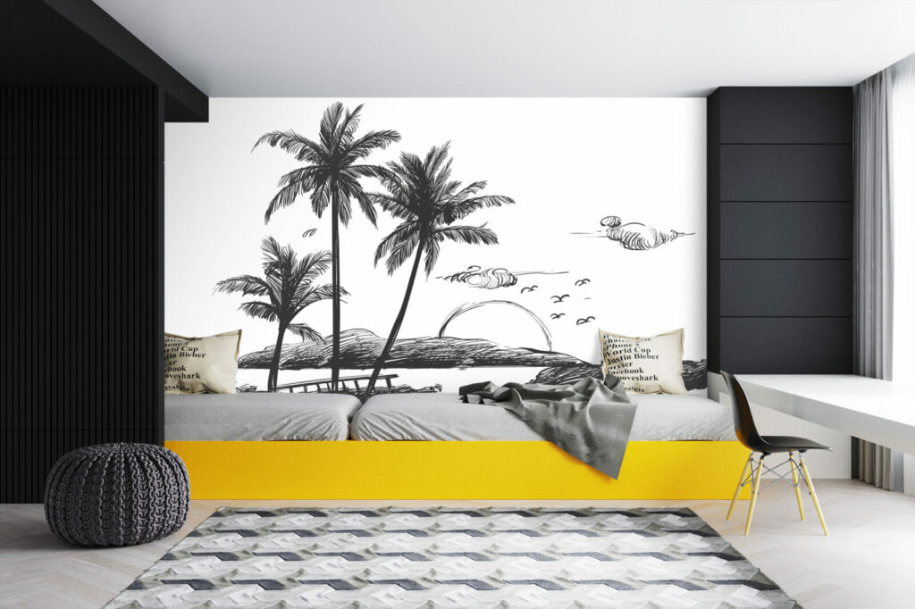 papier peint panoramique motifs japandi scandiboho végétal noir & blanc enfants géométrique vintage paysage wallpaper décoration murale décoration intérieur mobil-home