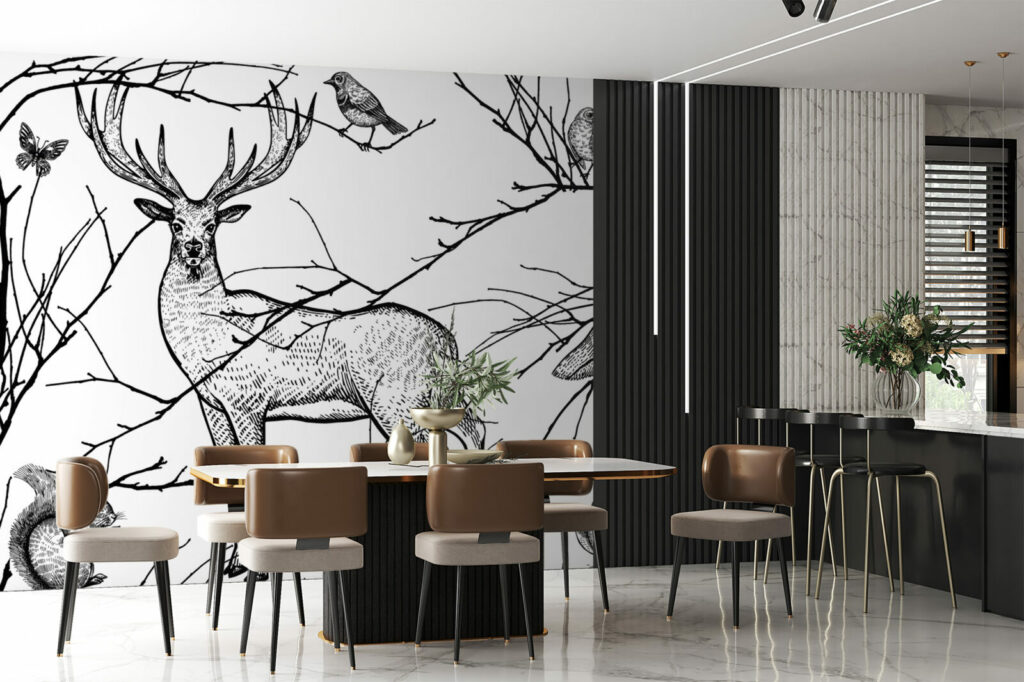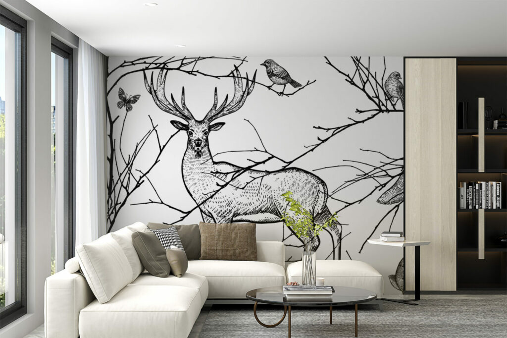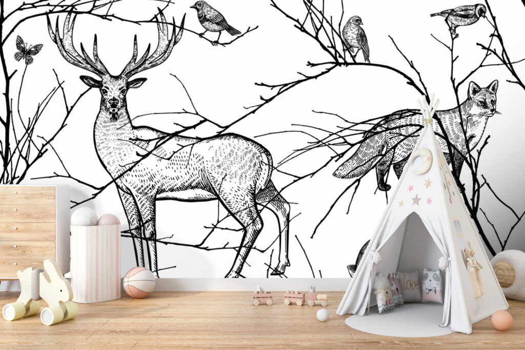 papier peint panoramique motifs japandi scandiboho végétal noir & blanc enfants géométrique vintage paysage wallpaper décoration murale décoration intérieur mobil-home
