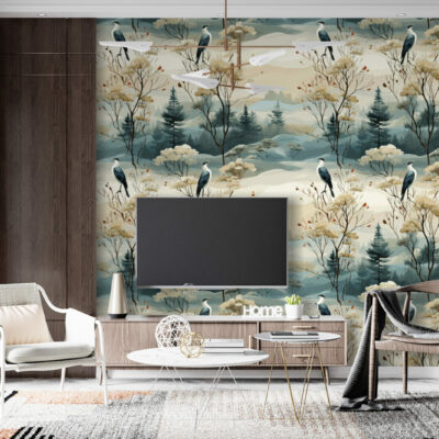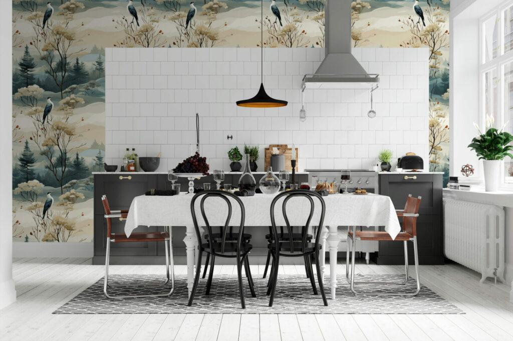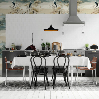 papier peint panoramique motifs japandi scandiboho végétal noir & blanc enfants géométrique vintage paysage wallpaper décoration murale décoration intérieur mobil-home