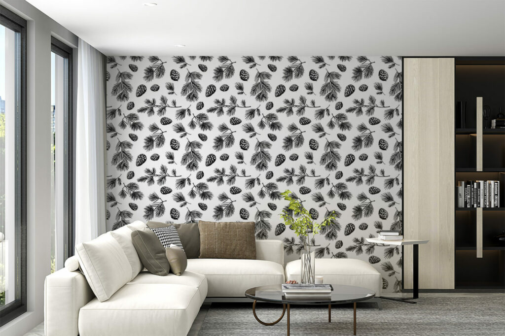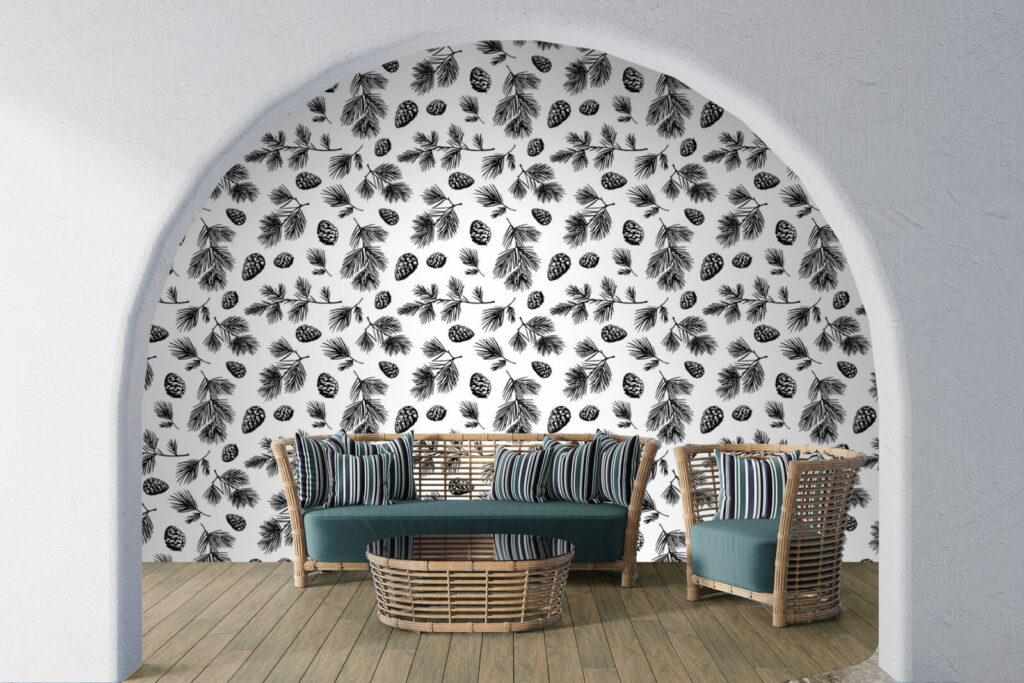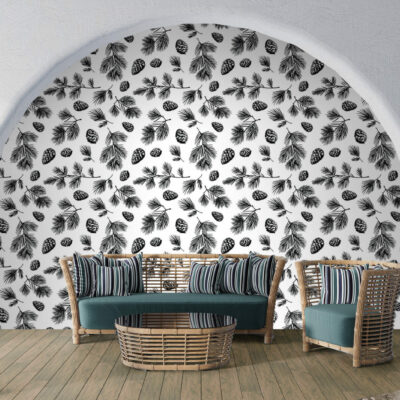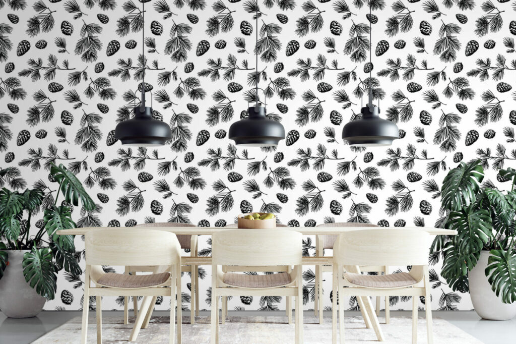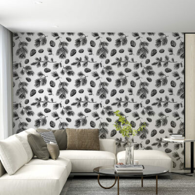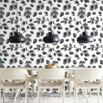 Habillez vos murs de délicates impressions de branches d’aiguilles de pins et de pommes de pins avec ce papier peint en noir et blanc.. Regardez de plus près et observez tous les détails des dessins qui ont été capturés. Que vous le préfériez tout autour de votre pièce ou en mur d’accent, optez pour ce motif dans une salle à manger, un salon, une cuisine ou une chambre cocooning et regardez votre intérieur prendre vie.