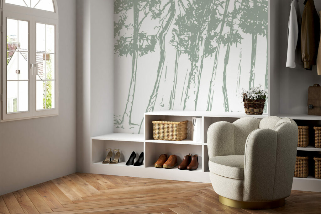 Perdez-vous dans ce papier peint forêt de troncs dans une seule couleur. Dessiné à la main, nous avons pensé ce modèle de forêt comme une alternative moderne et artistique au panoramique photo que l’on retrouve souvent dans cette catégorie. Les couleurs et les textures de peinture sont douces et légères, tandis que les arbres et feuilles disparaissent au loin pour donner de la profondeur. Que vous le préfériez tout autour de votre pièce ou en mur d’accent, optez pour ce papier peint forêt de troncs panoramique dans une salle à manger, un salon, une cuisine ou une chambre cocooning et regardez votre intérieur prendre vie.