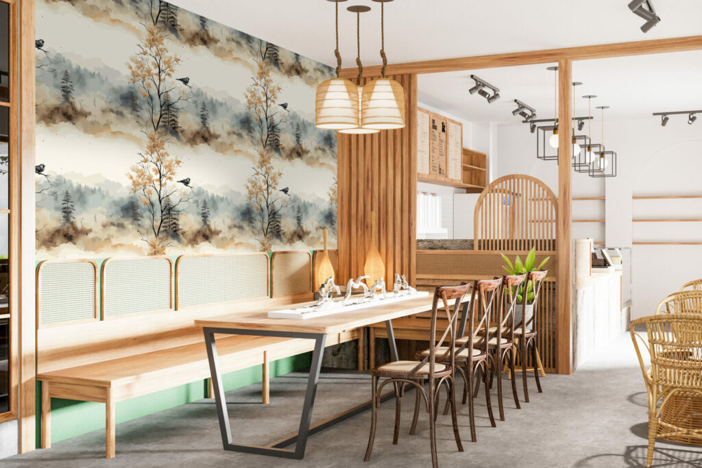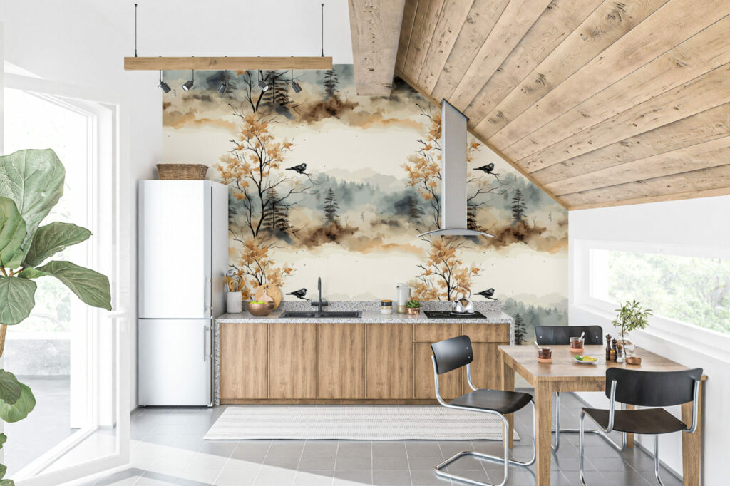papier peint panoramique motifs japandi scandiboho végétal noir & blanc enfants géométrique vintage paysage wallpaper décoration murale décoration intérieur mobil-home