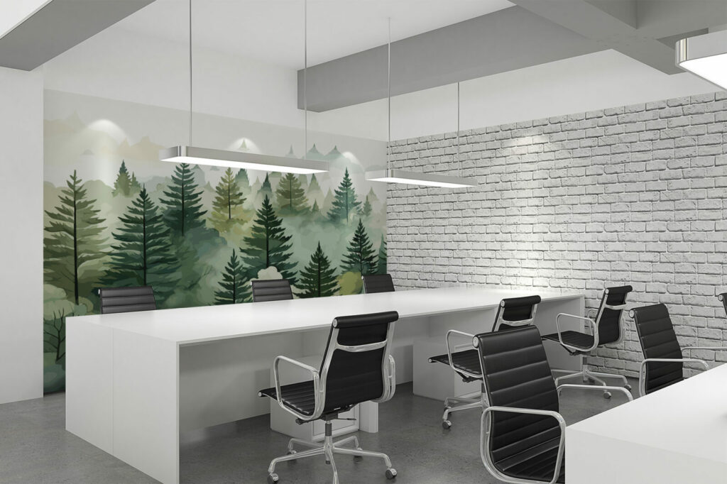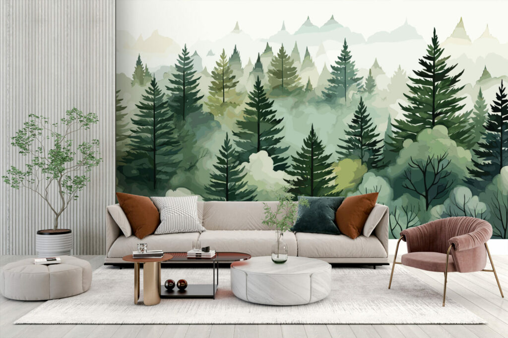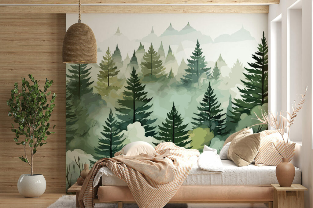 Amenez une partie de la végétation extérieure dans vos intérieurs avec un papier peint rempli d’arbres.