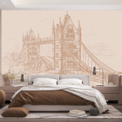 papier peint intissé dessin pont de Londres sur mesure chambre - beige