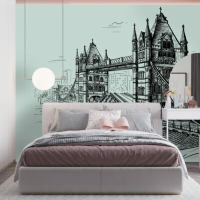 papier peint intissé dessin pont de Londres sur mesure chambre fille - vert