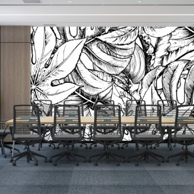 Fresque murale feuillage tropical abordable salle de réunion - noir