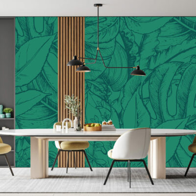 Fresque murale feuillage tropical abordable salle à manger - Vert