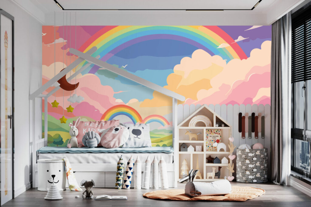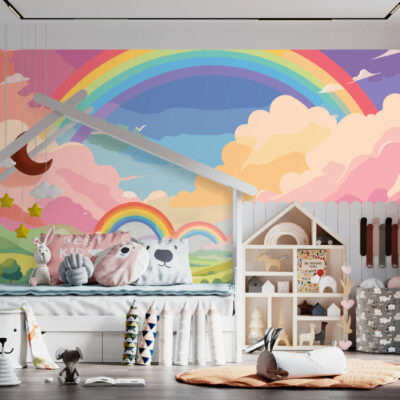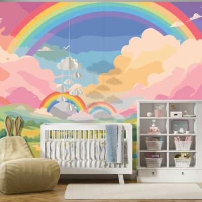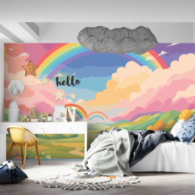 Découvrez le papier peint Vistosa, une explosion de couleurs et de formes qui transforme instantanément n’importe quel espace en un véritable rêve éveillé. Inspiré par la nature, ce design joyeux et enchanteur met en scène un paysage imaginaire composé de collines verdoyantes, de fleurs multicolores et de majestueux arcs-en-ciel traversant le ciel. Avec ses nuances de rose, de jaune, de vert et de bleu, ce papier peint apporte une touche de gaieté et d’évasion à votre intérieur, rendant chaque pièce lumineuse et pleine de vie.